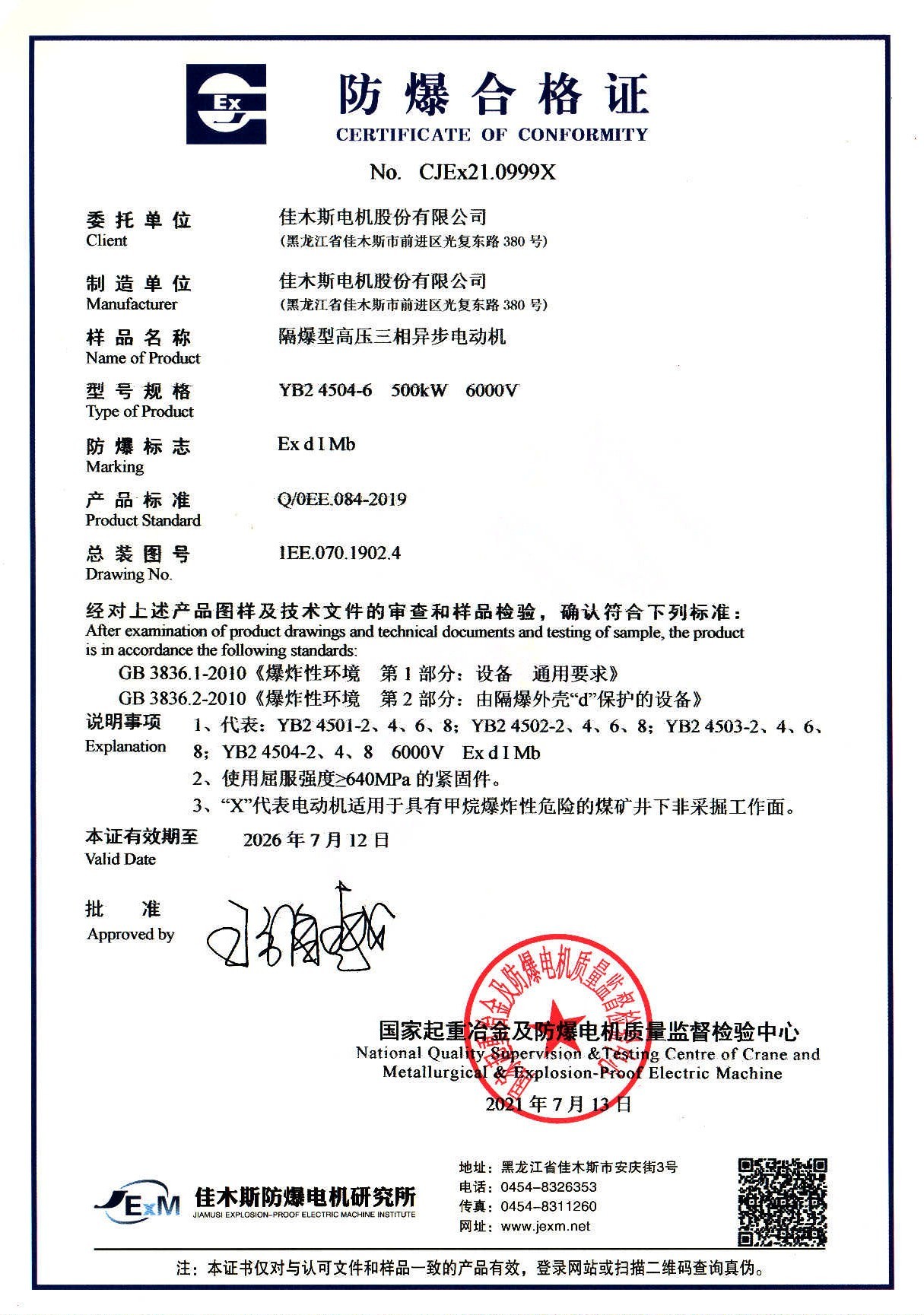 中央第一機(jī)械工業(yè)部佳木斯電機(jī)廠